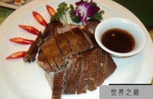 将优质肉食鸭北京鸭放在果木炭火上烤制,烤好后色泽红润,肉质肥而不腻,外脆里嫩,是一道宫廷食品。