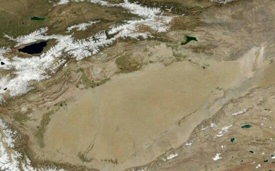 他里木盆地的位置是在昆仑山和帕米尔高原之间,天山以南,它的形状很像一个菱形。大约只有东端有宽约70km的缺口和甘肃河西走廊相连,是一个非常巨大的内陆盆地。这个盆地东西长1500km,南北宽大约是在600km。盆地的面积达到了53万平方公里,是中国最大的盆地了。