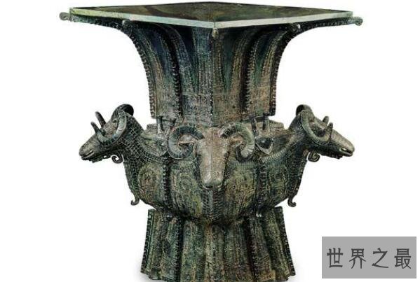 四羊方尊是于1938年出土在湖南宁乡县炭河里遗址的商代晚期青铜祭祀礼器,是重达34.5公斤的中国现存商代最大的青铜方尊,因肩部四角有四个卷角羊头而得名,因整个器物是一气呵成的用块范法浇筑,显示出了高潮的铸造水平而被列为十大传世国宝之一。