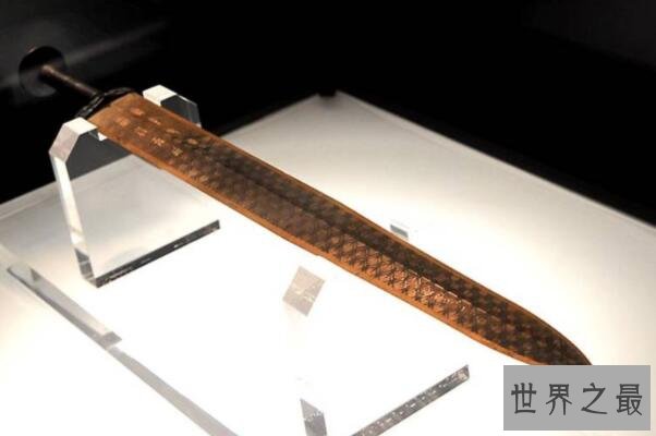 越南勾践剑这把有着“天下第一剑”美誉的春秋晚期青铜器,是于1965年出土在湖北荆州江陵县望山楚墓群一号墓,目前收藏于湖北省博物馆内,整把剑身上分布有规则的黑色菱形暗格花纹,剑阁正面镶嵌有蓝色琉璃,是青铜武器的珍品,可以体现出中国古代高超的青铜短兵器铸造工艺。