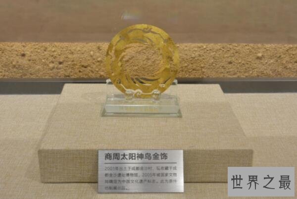 这个出土于2001金沙村的商周时期金器,目前收藏在成都金沙遗址博物馆内,整个厚度为0.02厘米的圆形薄片图案分内外两层,内层分布着等距十二条齿状光芒,外层则由司职逆时针飞翔的鸟组成,目前这个图案已经被国家文物定为中国文化遗产标志。