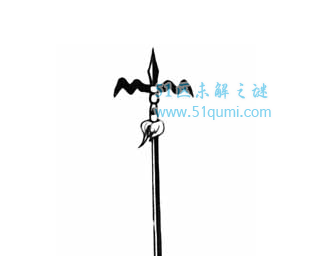 这种兵戈的款式该当喊干“凤翅镋”或者“凤翅镏金镋”,因为它的二边外展象是凤凰党羽而得名。普遍这种兵戈是镏金的。所以有人喊它“凤翅镏金镋”,是宇文成都的兵戈。