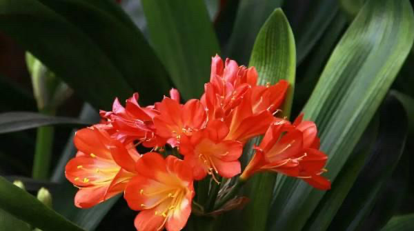 君子兰是一种观赏性花卉植物,花期时间只要集中在冬春两季,能从元旦前后开到春节期间,漏斗形的花朵直立生长,花瓣颜色有黄色、橘黄色、橙红色等,颜色十分的喜庆。