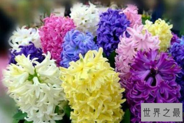 风信子的花朵十分奇特,比一般的花朵要高很多,而且姿态优美、颜色丰富,多种颜色的风信子放在一起培养,看上去十分多彩炫目,是一种适合盆栽和水养的用于观赏的花朵。