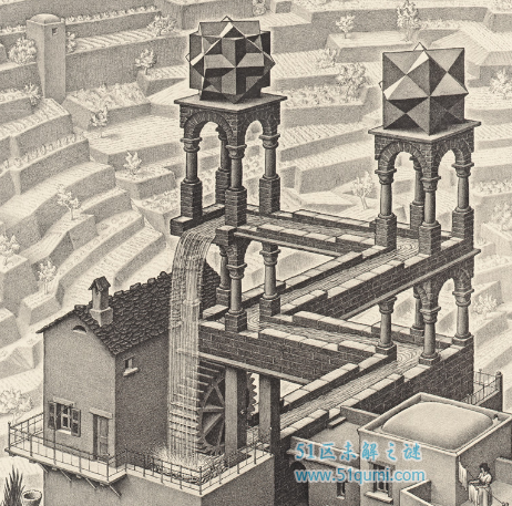 潘洛斯门路,别名潘罗斯门路、彭罗斯门路,由英国闻名数学物理学家、牛津大学数学系光荣熏陶潘洛斯提出。潘洛斯门路是:四条楼梯,四角贯串,然而是每条楼梯都是进取的,因此不妨无限蔓延启展。在三维世界中不大概涌现。