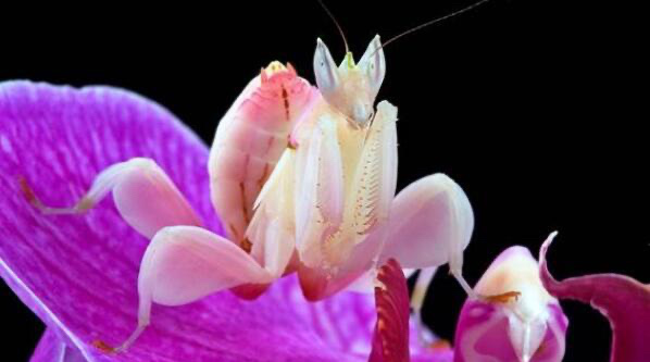 兰花螳螂是螳螂目中最漂亮的物种,它们具有高超的伪装技巧,能变化成类似花瓣的构造和颜色,栖息在兰花中很难被察觉。