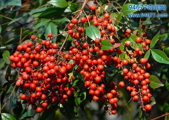 南天竹:南天竹全株有毒,中毒症状为兴奋、脉搏先快后慢、血压下降、肌肉痉挛、呼吸麻痹、昏迷等。