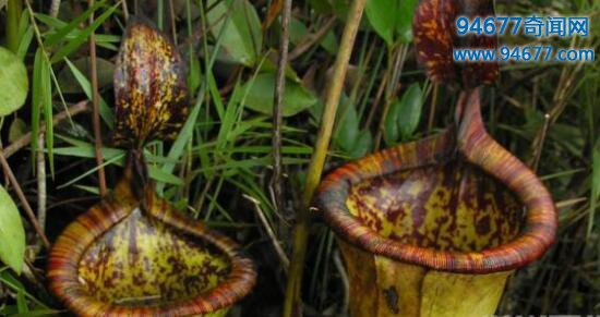 巨型猪笼草:分泌一种类似花蜜的物质,引诱没有疑心的猎物主动进入一个酶和酸的“死亡之池”。