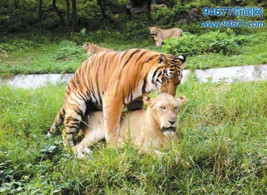2、虎狮兽:雄虎与雌狮杂交后的产物,称为虎狮兽,其头像老虎,身体像狮子。