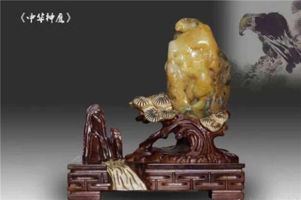 中华神鹰便像其名字一般,外形像一个老鹰,有鹰嘴也有鹰的目光,而且完全的线条也十分相像,共时配搭上金黄的脸色,便像是一个活灵巧现的老鹰,这块石头博家的估价为1.2亿。