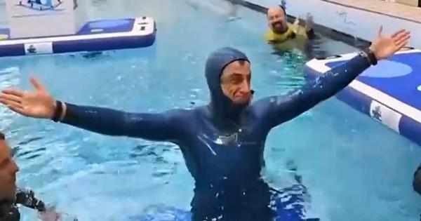 在伦敦的一个游泳池里,他以水下憋气22分钟打破了2010年自己创造的20分10秒的吉尼斯纪录,被认为是“没有呼吸的男人”。