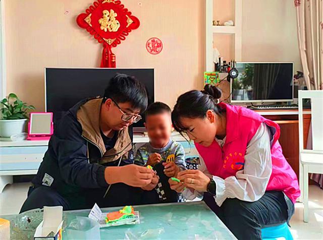 中国民生经济网讯 今年4月2日是第16个“世界自闭症日”。为了呼吁全社会关注、关爱自闭症儿童,4月2日下午,新疆兵团一师七团迎宾路社区新时代文明实践站志愿者们拎着小零食和益智玩具走进仁和小区小蓝(化名)小朋友家中。