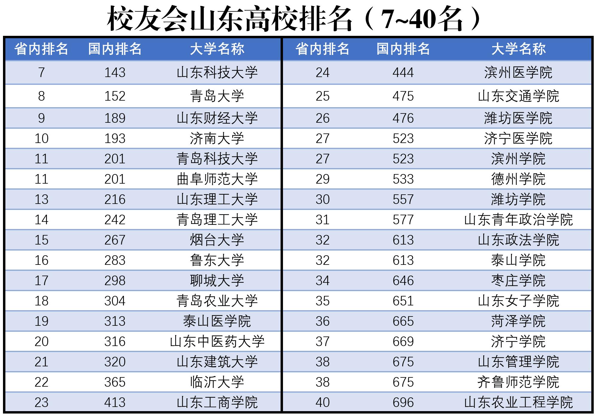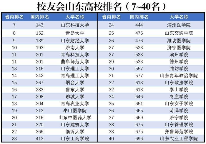 第七~四十名,请看图表。需要说明的是,青岛大学的第八名,确实有点靠后了,毕竟录取分数在那摆着,排在第八名,也有些说不过去。