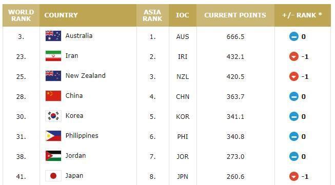 在亚洲及大洋洲赛区内部,中国男篮位居第四,排在澳大利亚(世界第 3)、伊朗(世界第 23)和新西兰(世界第 25)之后。
