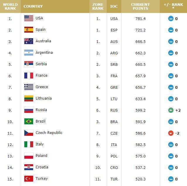 男篮国家队世界排名:美国第1,中国第28,列亚洲第4