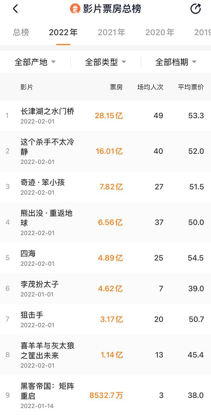 上映8天,春节档电影票房排名来了,你为哪部贡献了票房