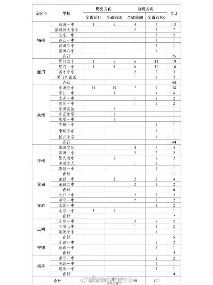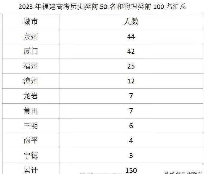 】2023年福建高考历史类前50名和物理类前100名汇总表出炉!泉州以44名位列第一,厦门以42名位列第二,福州以25名位列第三。(泉州晚报)#2023福建高考#