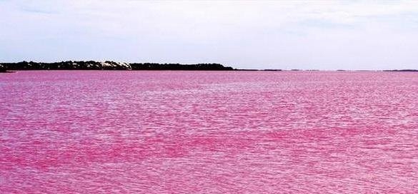 湖水变粉色的缘故是湖泊里有一种能发生类胡萝卜素的藻类,因此产生尘世罕见的粉赤色湖泊。