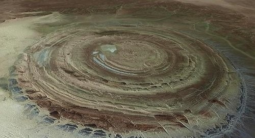 在卫星图上瞅,查理特构造像是一只「伟人的眼睛」,注视着撒哈拉大戈壁。