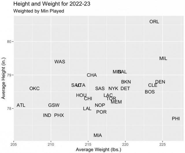 NBA30队体重&身高图表:魔术队身高霸榜 老鹰最轻