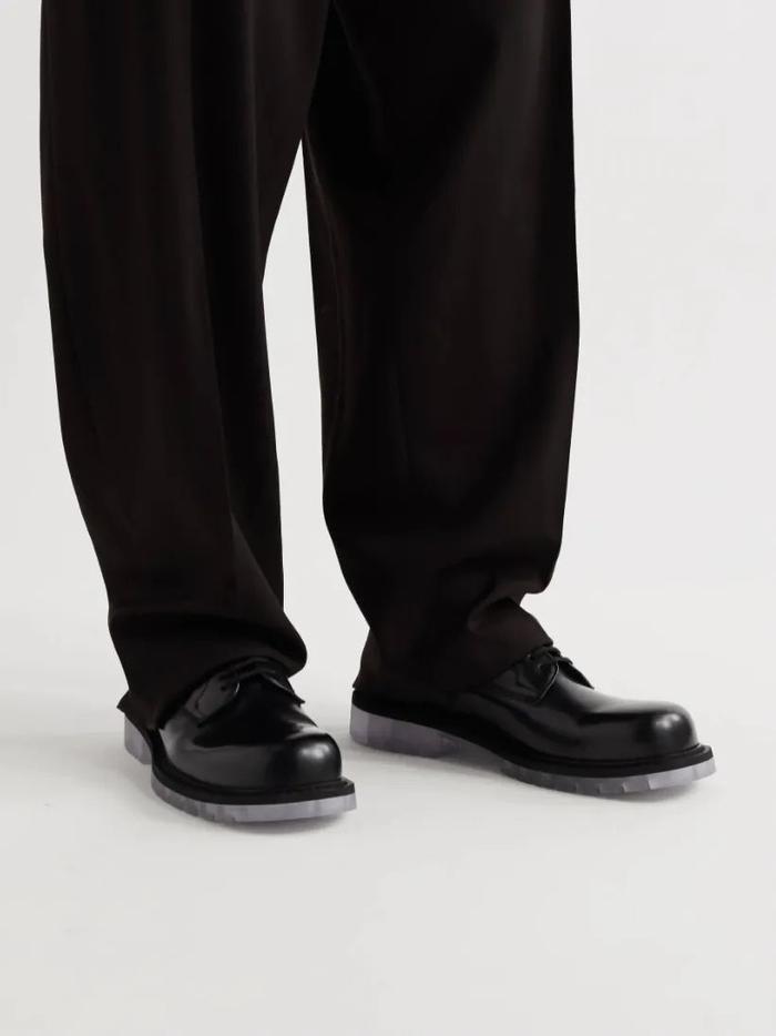 皮鞋类产品令处于球鞋审美疲劳的人群感受到了不一样的新鲜感,如果任何趋势产生都需要一个引爆点,那 Louis Vuitton、Parda、Dior、Bottega Veneta、Maison Margiela、Balenciaga 等时装品牌都在推出的德比鞋将成功引爆。