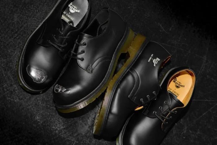 这双 Raf Simons x Dr.Martens 1925,鞋身点缀了双方品牌 Logo;鞋面还采用了割裂的设计,露出了内里的金属鞋头,旨在向品牌的叛逆基因致敬。