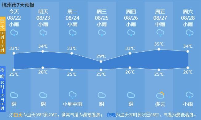 气温方面,26日以前杭州最高气温在34℃上下波动,最低气温26℃左右。