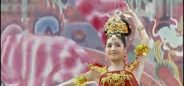 此图是皇帝第一次看见香妃,香妃一曲舞可是惊呆了整个中国皇宫里面 的人。香妃这一身舞衣是不是有点太露了呢?要知道刘丹版本的香妃可是穿衣总是很优雅呢!就说旧版香妃的头发箍谁没有买过吧?自从看了《还珠格格》,小编曾经到了旅游景点看到了那个白色的发箍开卖了一个呢!