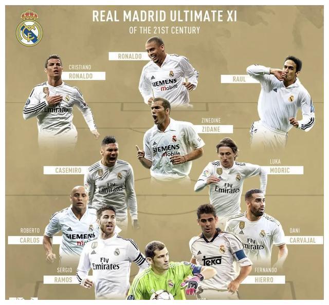 C罗场上司职边锋,中锋。C罗2009年加入皇家马德里足球俱乐部,2018年离开。皇马期间,球队在2013-2014赛季、2015-2016赛季、2016-2017赛季和2017-2018赛季共获得4次欧冠冠军,并在2013年、2014年、2016年和2017年获得金球奖。皇马截止到2021年,有两个时期的阵容被称为他们的巅峰阵容,其中皇马第二代巅峰阵容C罗就在其中,在主教练齐达内的带领下,他们在三个赛季里实现了三连冠。接下来介绍一下皇马的第二代巅峰阵容。