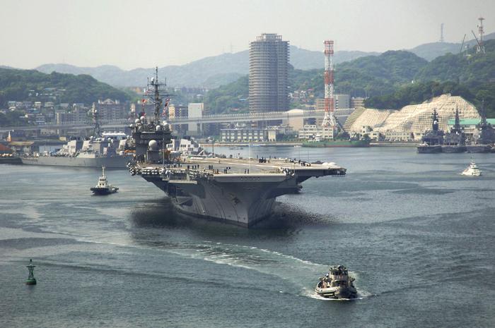 “小鹰”号服役后的母港为日本的横须贺港,为在日本长期驻扎的航母,曾有人分析称日本是世界上唯一遭受核打击的国家,对“核”有着极强的抗拒心理,所以美方为了照顾日本,才会一直让传统动力的“小鹰”号在日本部署到核动力航母早就大规模服役的2008年,但美国并没有对这一猜想进行过正面回应(现在里根号核动力航母在日本,也没见日本人有什么不良反应)。