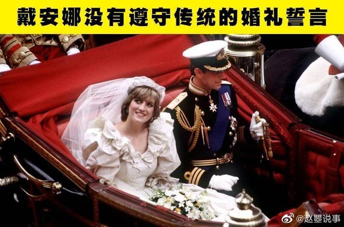 在戴安娜的婚礼之前,所有的皇室新娘都遵守了英国国教的传统誓言。伊丽莎白女王、玛格丽特公主和安妮公主发誓要“爱、关心和服从”他们的丈夫。然而,戴安娜对不得不服从查尔斯并不满意,所以在婚礼那天,她把这个词从誓言上删除了。她可能不会想到的是,她未来的儿媳凯特和梅根会在自己的婚礼上效仿她。