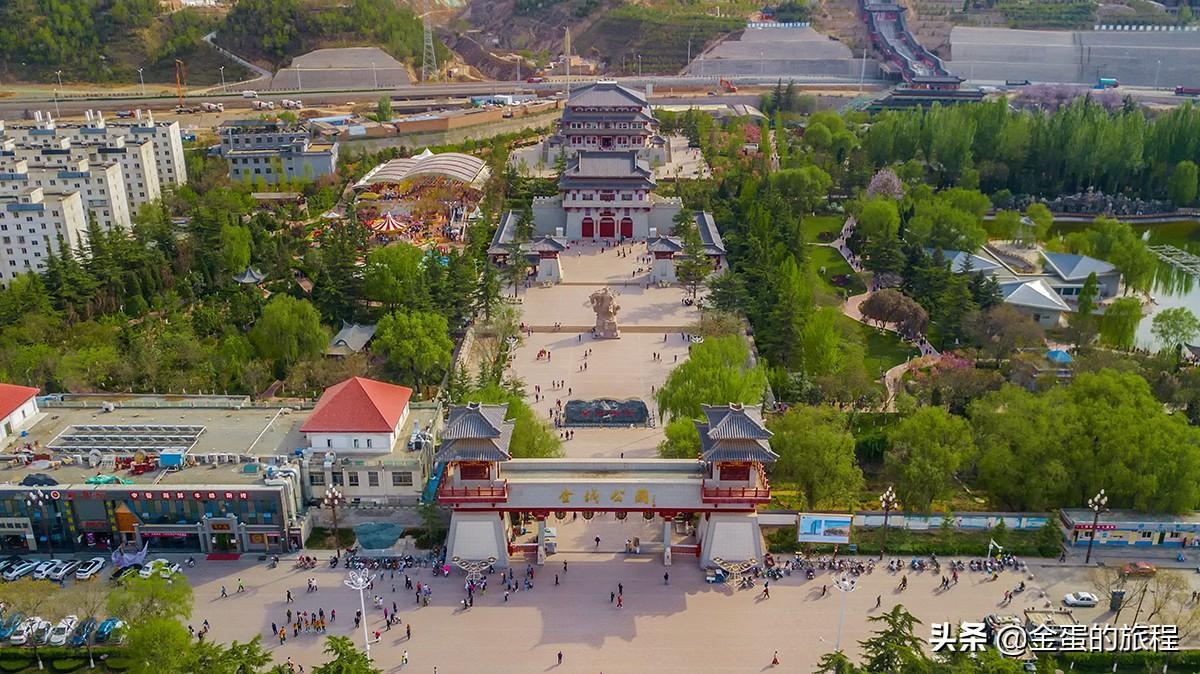 目前建成的公园一期规模已经非常庞大,进入公园大门后,中轴线上可以见到李息将军广场、金城楼和西秦宫等标志性仿古建筑,金城楼目前挂牌是“金城文化博物馆”,而西秦楼挂牌“鲜卑文化博物馆”。