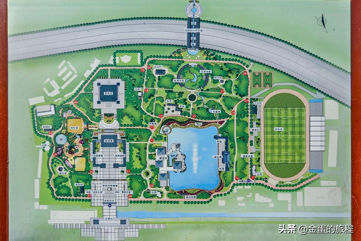 在金城公园里,除了中轴线上的广场和大型博物馆建筑外,公园的两侧的空间也非常的巨大,左侧是巨大的儿童游乐园,而右侧则是人工湖、庭院、戏楼和体育场,整个公园没有2个小时逛不完。