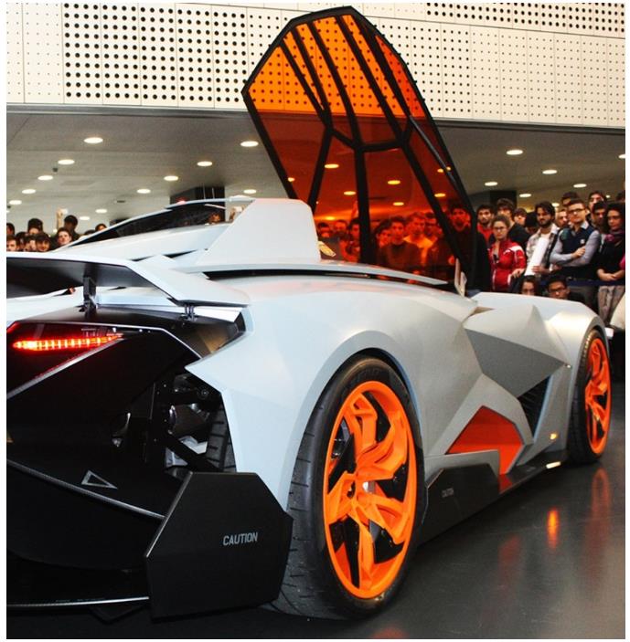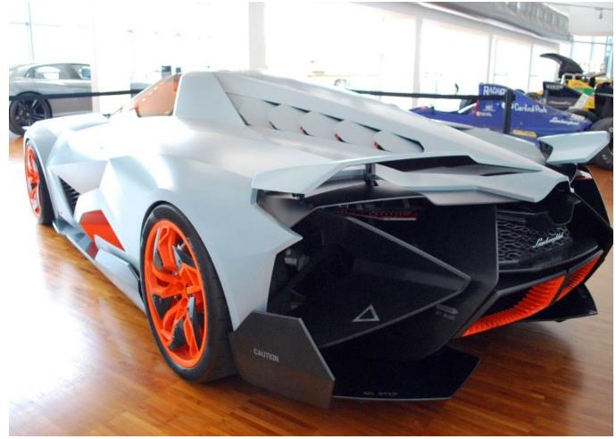 Egoista是兰博基尼公司为了庆祝品牌诞生50周年而打造,外观大量运用折现、不规则几何造型,使得车身充满了侵略性以及科技美感。