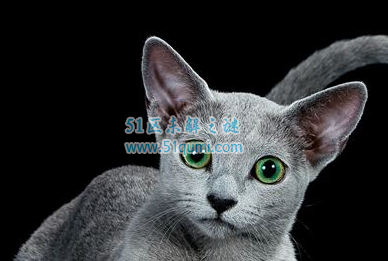 俄罗斯蓝猫具有灰色的毛发,绿色的眼睛,体型纤悉,格外和缓