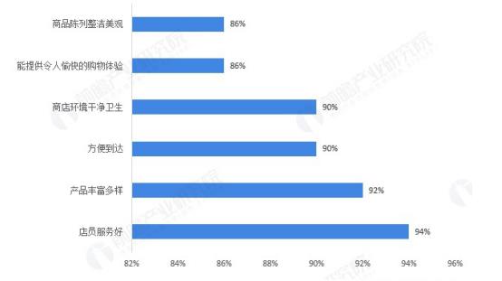 根据尼尔森的调查数据显示,94%的用户认为超市的店员服务应当好;92%的用户会考虑超市提供的产品种类是否丰富;90%的客户会考虑超市的地理位置,是否便利到达,店铺环境是否干净卫生等。从中可以看出超市的服务体验依旧消费者关注的首位。