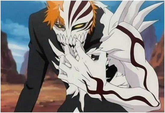 《bleach》的主角,为了对抗强敌而掌握了虚化的力量。脸上会凭空生出一张虚的面具。而且虚化的程度不同,面具也会发生变化。在对战小乌的时候,一户濒死,沉底虚化,面具的标志性形状是两个牛角。