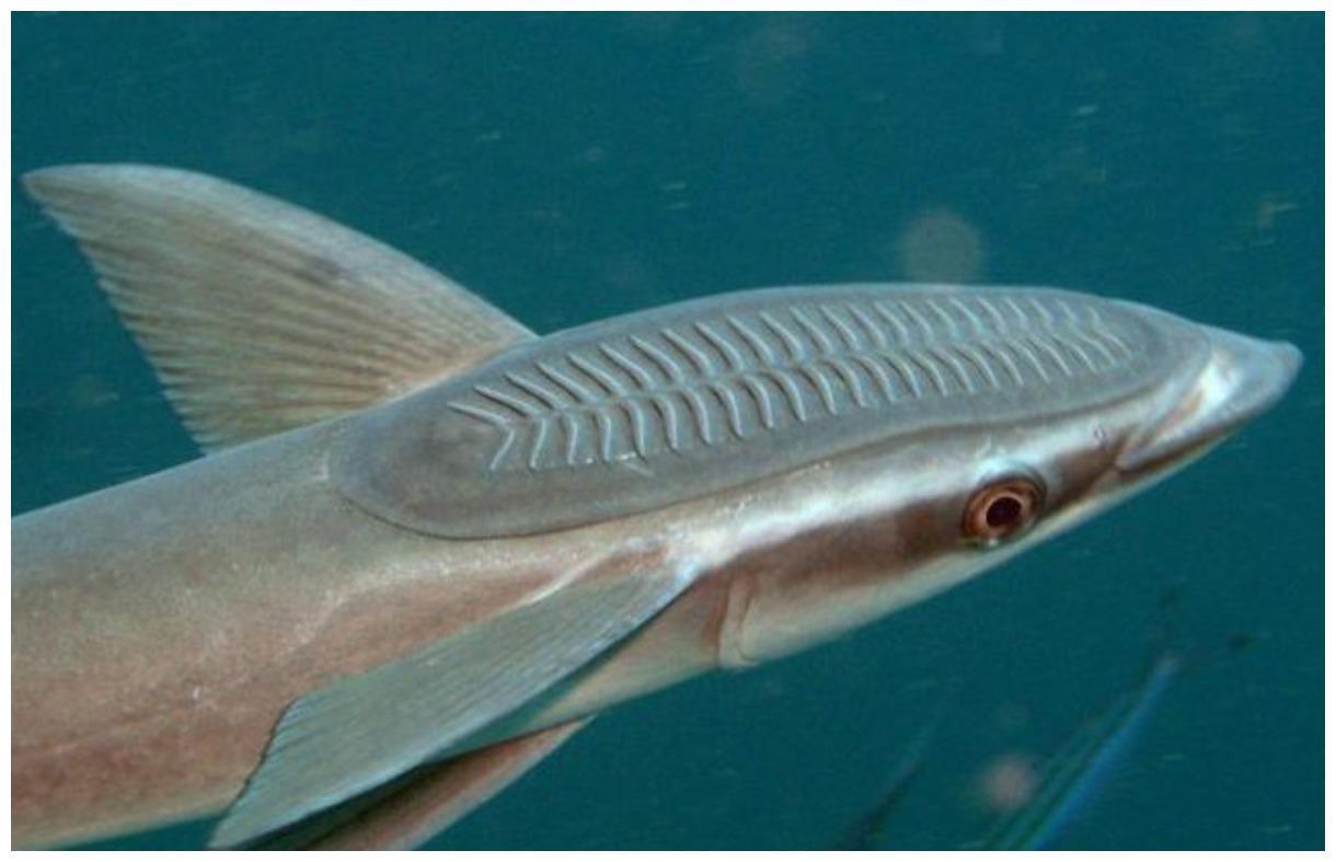 䲟鱼又称为吸盘鱼 ,中国民间也叫它鞋拔子鱼,䲟鱼游泳能力较差,主要靠头部的吸盘 ,吸附在大型鲨鱼或者海兽的腹部。有时也吸附在船底 ,被带到世界各地的海洋,是个逃票高手。不是在搭顺风船,就是在去搭顺风船的路上,被称为世界上最懒的鱼。外号:天生旅行家。