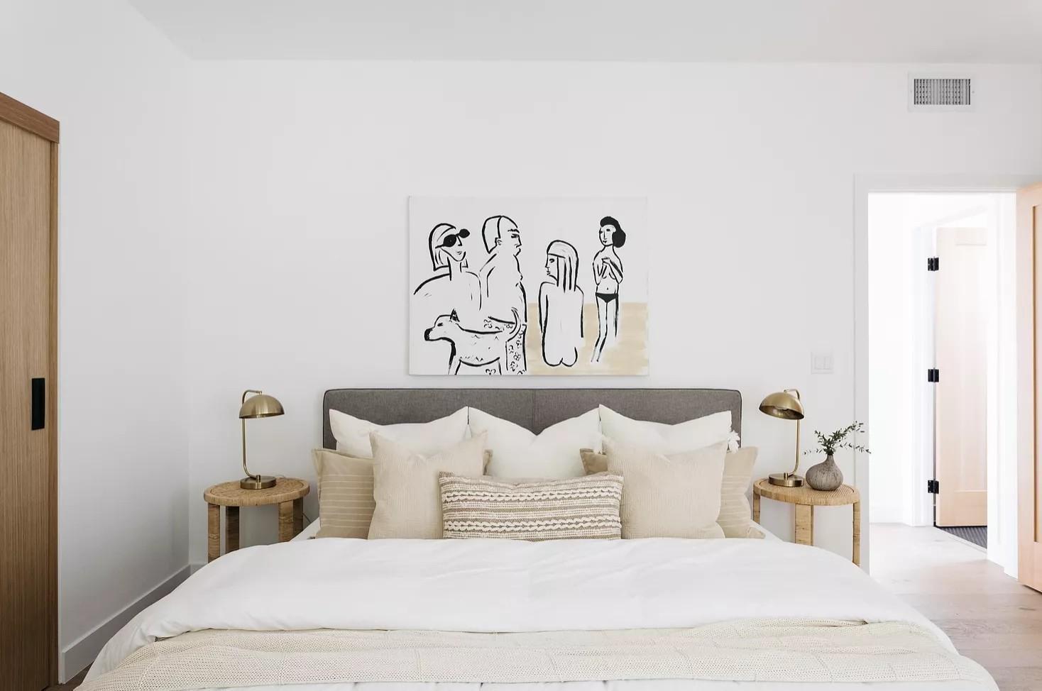 所有的东西都是白色的,清爽、干净,而且能轻易达到。但如果你希望让你的房间温暖一点,可以考虑在其中加入一些米黄色的配件。这种颜色让你的房间,尤其是卧室感觉更舒适,重要的是不会破坏你的极简主义的色彩方案。