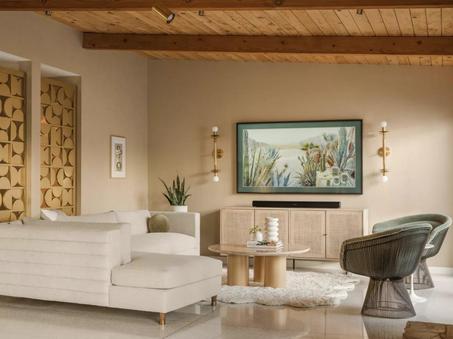 米黄色和焦糖色是另一种经典色彩组合,常用于客厅或其他需要突出舒适的空间。这两种颜色都是温暖的中性色,搭配在一起不会出错。这对色彩组合在与其他颜色搭配时,可以给房间带来活力。