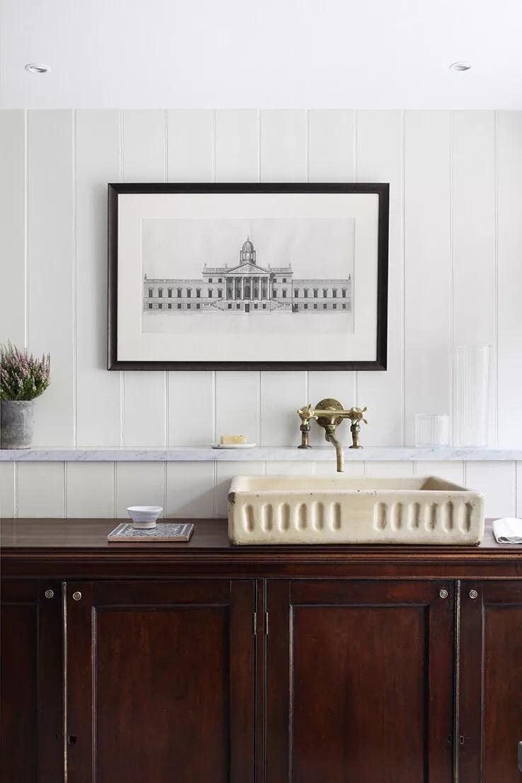 当你把红木色的家具与大理石或复古墙纸结合起来时,这对优雅的组合自然而然就出现了,这是一种多么朴素的经典。