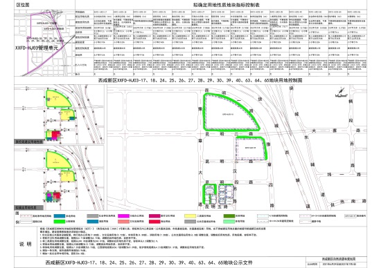 关于西咸新区XXFD-HJ03-17、18、24、25、26、27、28、29、30、39、40、63、64、65地块用地控制图公示并征求意见的公告,具体内容如下: