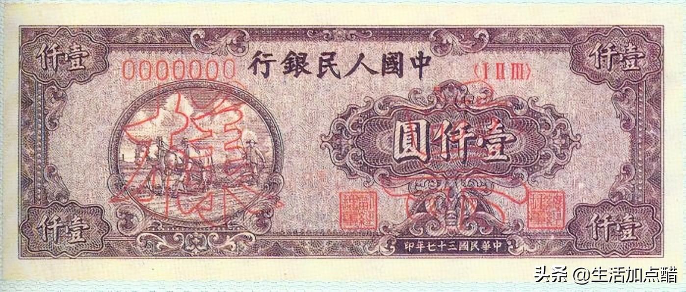 第一套人民币1000元样币