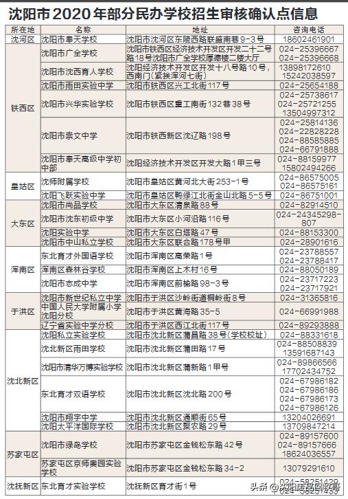 沈阳市33所私立义务教育阶段学校一览表(部分)