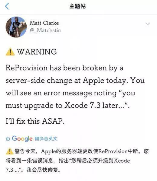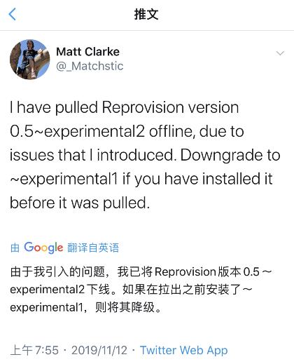 接着,ReProvision 开发者在推特回应,我尽快修复。