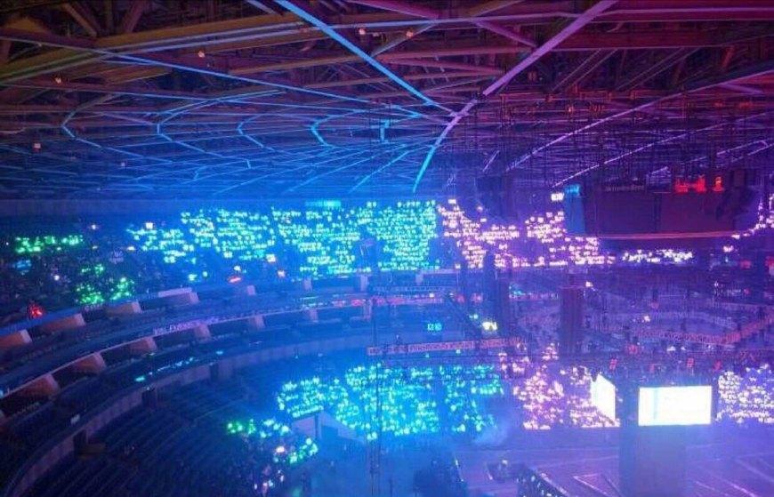 这次在上海的飞行演唱会相比于成都首唱会,设备更加完善、场地更加开阔、来的粉丝也更多,自然应援灯牌就更多了,这些应援灯牌几乎都是一个颜色的聚在一起,这样出来的效果就会非常好看。从现场图来看,观众的人群已经被灯牌划分为了一个个粉色、蓝色、黄色、紫色的灯的海洋。