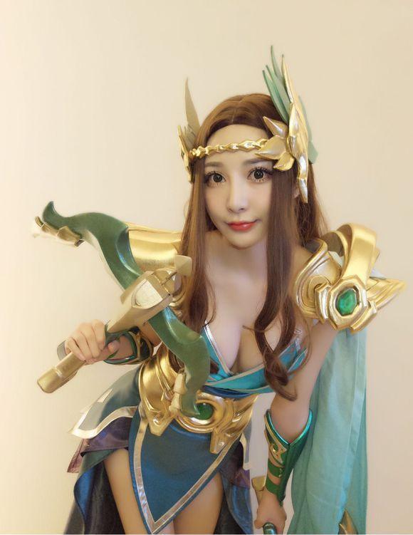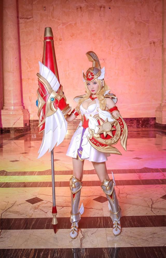 游戏人物雅典娜,coser无论是颜值还是身材上都是完美的还原了游戏人物。而且游戏中的道具也是制作十分的精良,和游戏中雅典娜使用的装备高度相似。