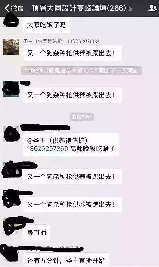 在群里发红包都叫“供奉”,是专属于高飞的,如果谁手贱抢了群主的供奉,还会享受到高飞的脏话Diss和拉黑待遇。