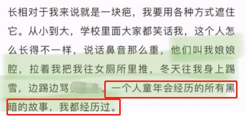 是啊,即便再怎么掩饰,长相对于一个想当明星的孩子来说是一块致命的伤痕,是要想尽一切方法遮住的。