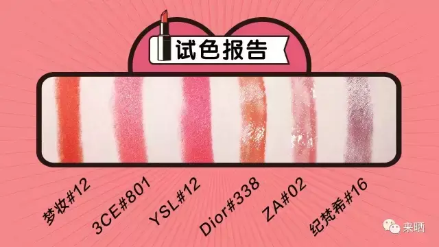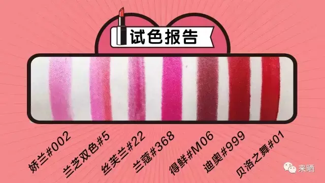 本次测评的口红如下